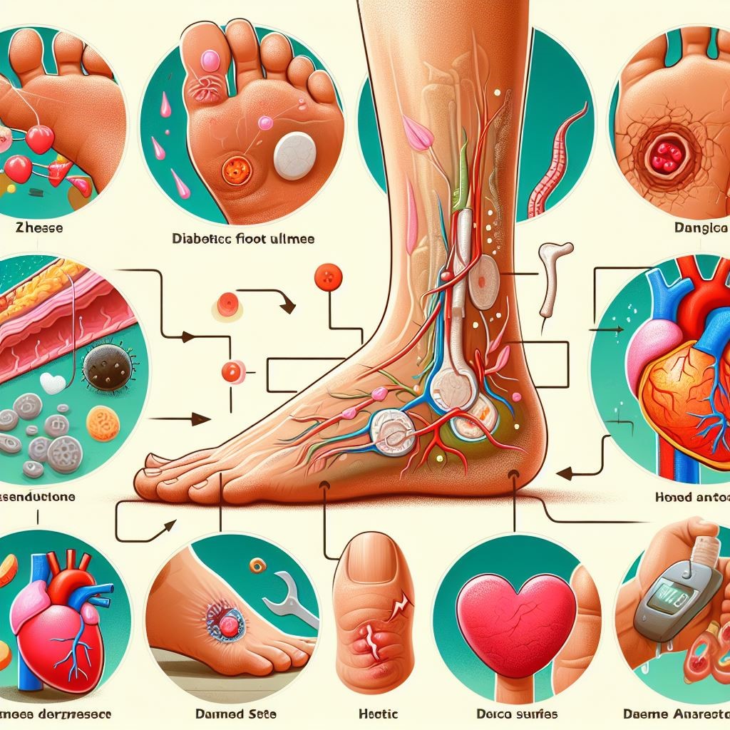 ● 원인: 당뇨병성 족부궤양의 발생 원인으로는 낮은 사회경제적 지위, 발모양의 변화, 미세혈관 질환, 당뇨병의 이환기간, 발바닥 압력 등이 있습니다. 특히 당뇨병 환자에서는 말초신경병증과 말초혈관질환으로 인해 발생 위험이 높아집니다.