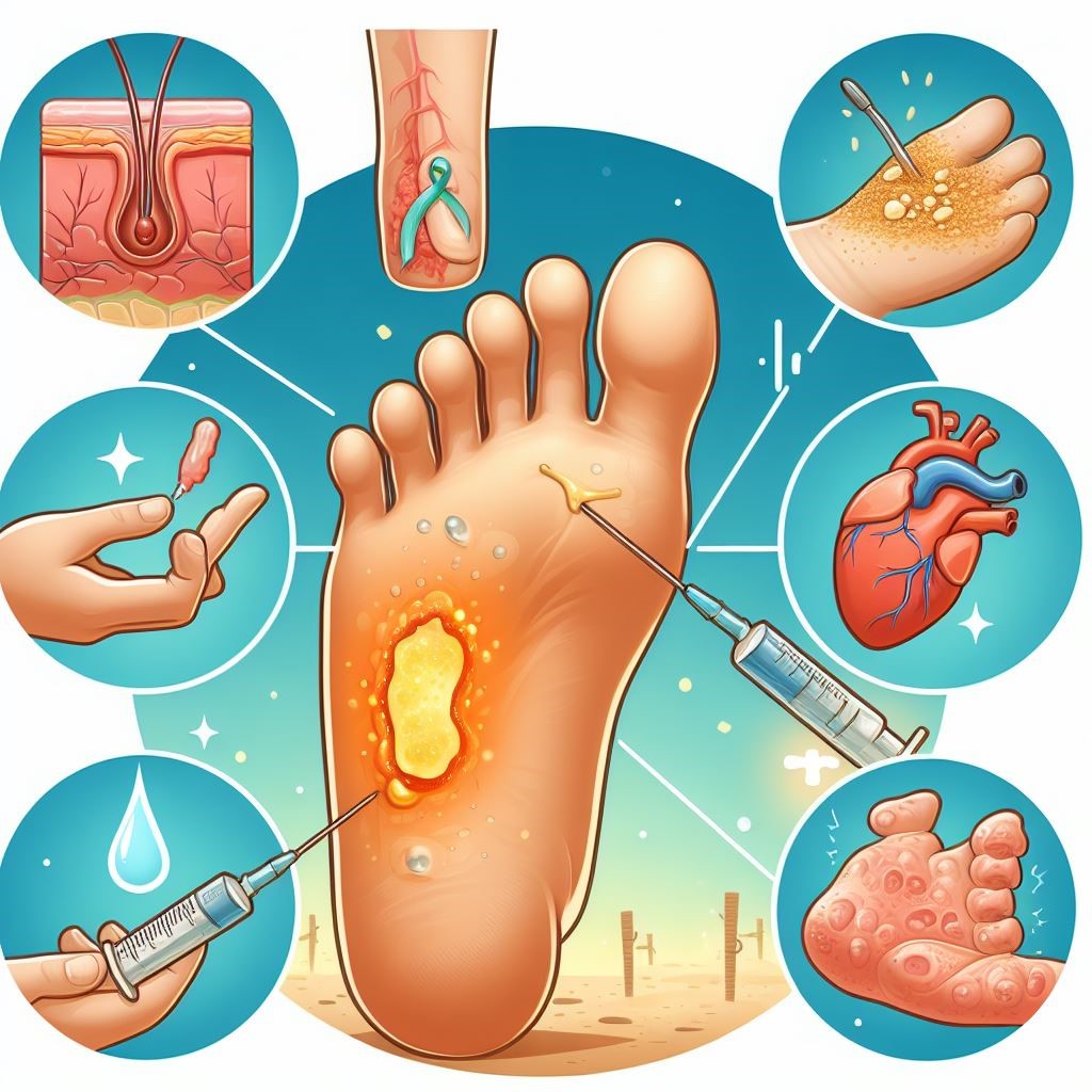 증상: 당뇨병성 족부궤양의 주요 증상으로는 발에 생긴 상처나 궤양이 잘 아물지 않는 것입니다. 초기에는 통증이 없을 수 있으나, 감염이 진행되면서 심한 통증을 느낄 수 있습니다. 5