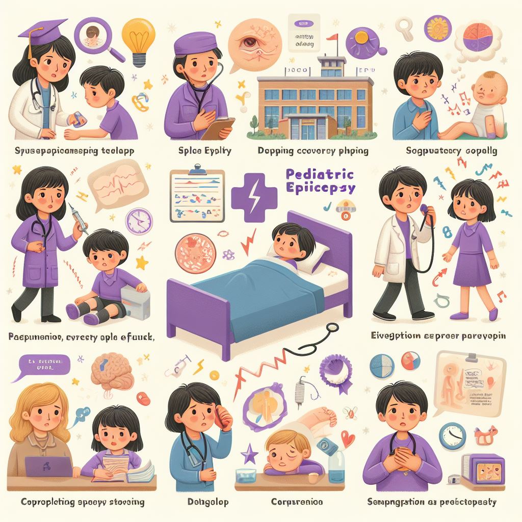 소아 뇌전증 증상에는 의식 소실, 신체 일부 또는 전체의 불수의적인 경련, 갑작스러운 감정 변화, 시각적 환각, 갑작스러운 실신 등이 포함됩니다. 또한, 뇌전증 이외의 다른 증상들—새로운 언어 장애, 학습 환경에서의 어려움, 기억력 문제, 낮은 에너지 수준 또는 기타 신경학적 변화—이 나타나기도 합니다.